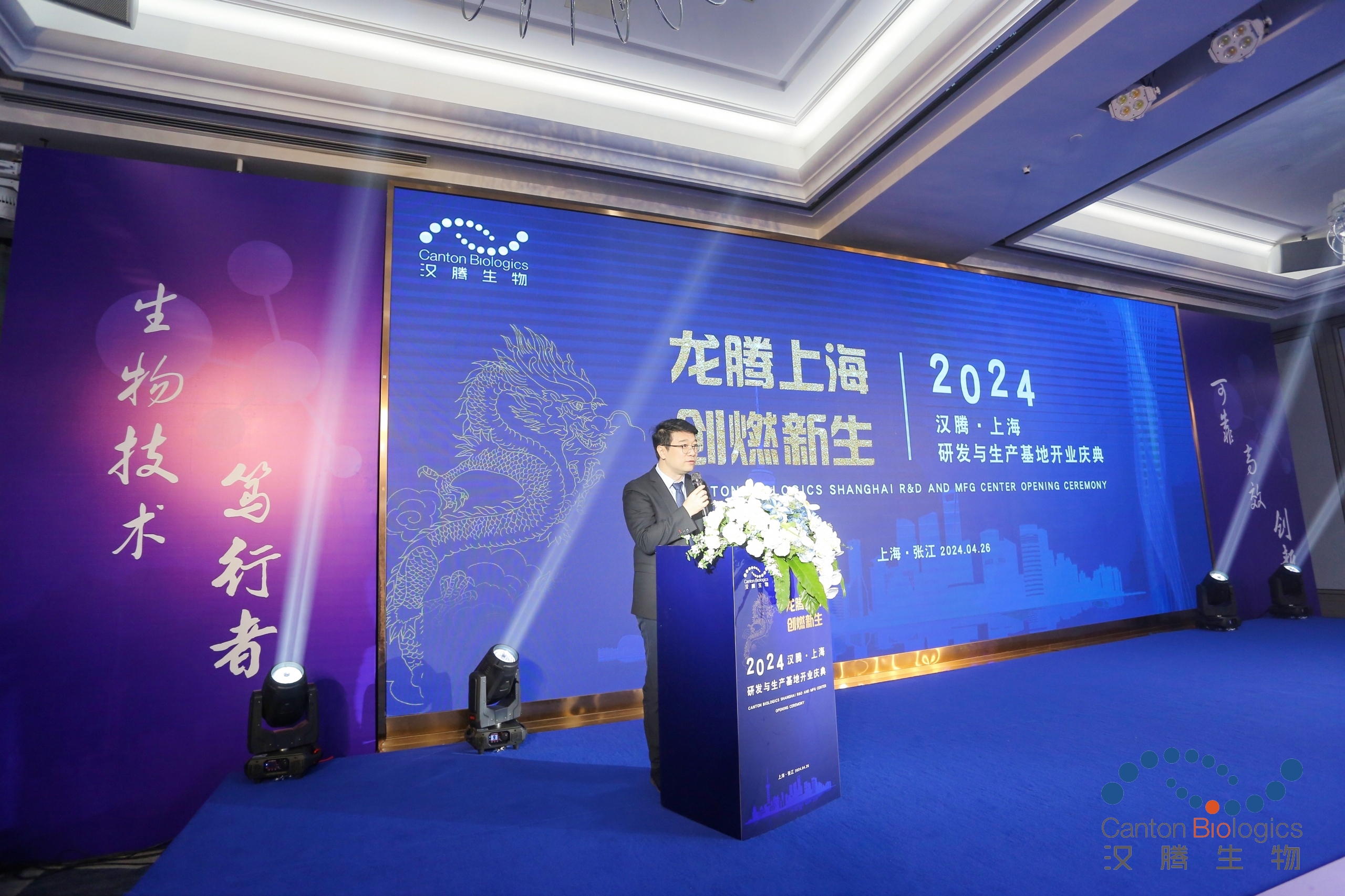 汉腾生物联合首席执行官张春华随后上台致辞,他表示:汉腾生物是一家国际化运营的生物药CDMSO公司。从成立初期就秉持“生物技术赋能未来”的使命,致力于为全球生物药及生物技术公司提供端到端的一站式服务。经过多年的发展,汉腾生物已发展成粤港澳大湾区生物技术领域的佼佼者,以国际化运营的姿态,为全球合作伙伴提供专业、高效的服务方案。公司在全球拥有六大研发与生产基地,其中上海张江大分子CDMO 研发与生产基地位于金科路张江药谷核心区,靠近中国最集中的生物医药产业集群,目前已完成第2条2000L生产线,1条500L生产线,2条 200L生产线的设备和调试,配合上海大分子研发与生产基地CMC研发生产团队,将打造生物制药从研发到临床到商业化供应的一站式解决方案,为全球、特别是亚太与中国地区客户提供更多样化的选择。